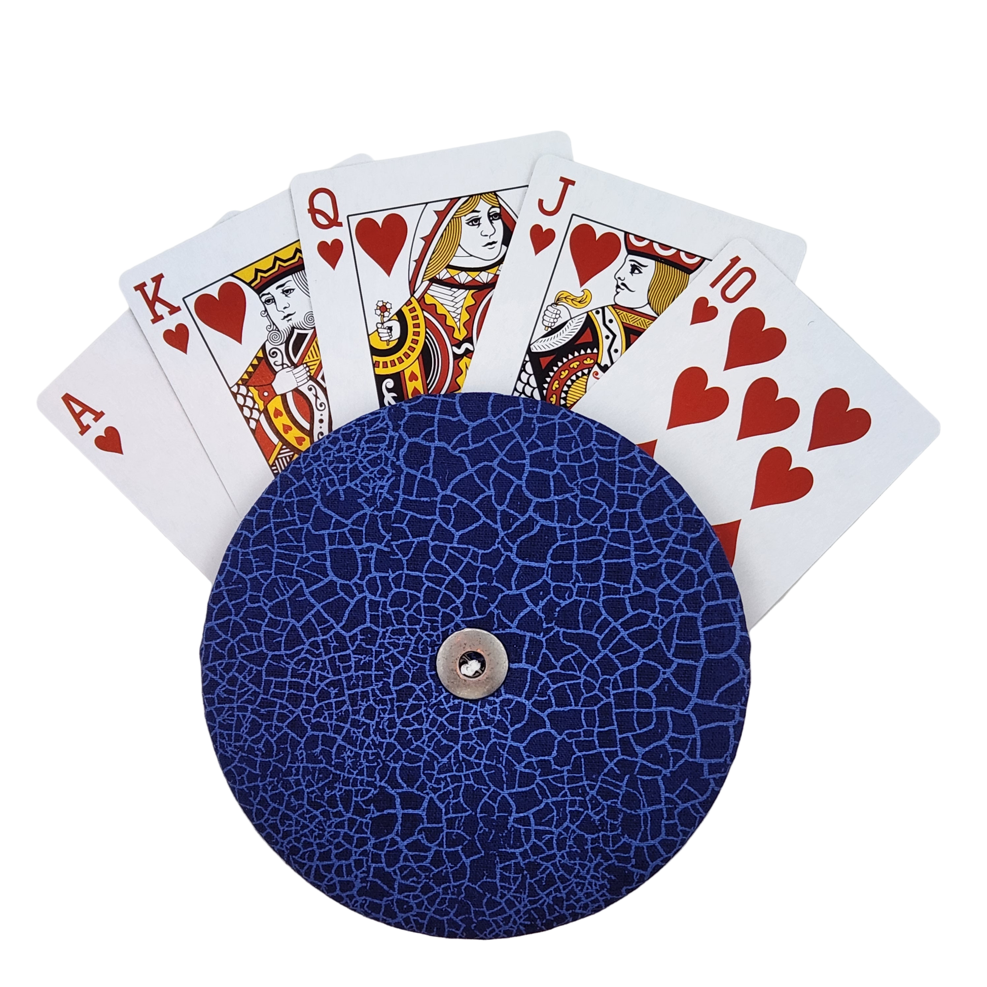 Our lightly-cushioned playing card holders are a handy accompaniment for game-lovers young and old! If you face challenges with dexterity, grip strength, or arthritis, the cinched cotton covering and layer of soft batting make it easy and comfortable to keep your hand organized and private. They also give each player a pop of color and personality! The front and back are attached only in the center, so there is plenty of room for a large quantity of cards, even if you frequently fall prey to the dreaded "Draw 4."